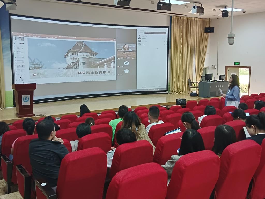 薛硕悦向各位老师介绍了SEG(Swiss Education Group)瑞士教育集团,是瑞士规模最大、综合排名第一的款待业管理教育集团。并从学校教育、师资、优质认证、就业平台方面等方面阐述了集团优势。他还特别别向各位老师介绍了SEG旗下四大品牌大学的基本情况及课程设置。四所大学分别是瑞士酒店管理大学、瑞士恺撒里兹大学、瑞士蒙特勒酒店工商管理大学和瑞士美食艺术管理大学。这四所大学在2021年QS世界大学学科排名酒店管理类均在前10之列。