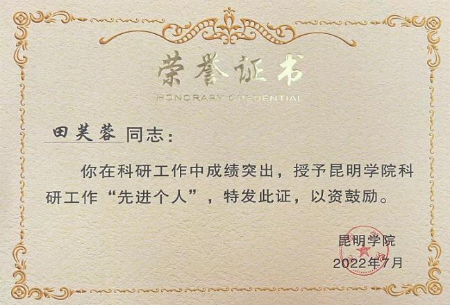 旅游学院田芙蓉教授和鲁芬博士获得科研工作“先进个人”荣誉称号。