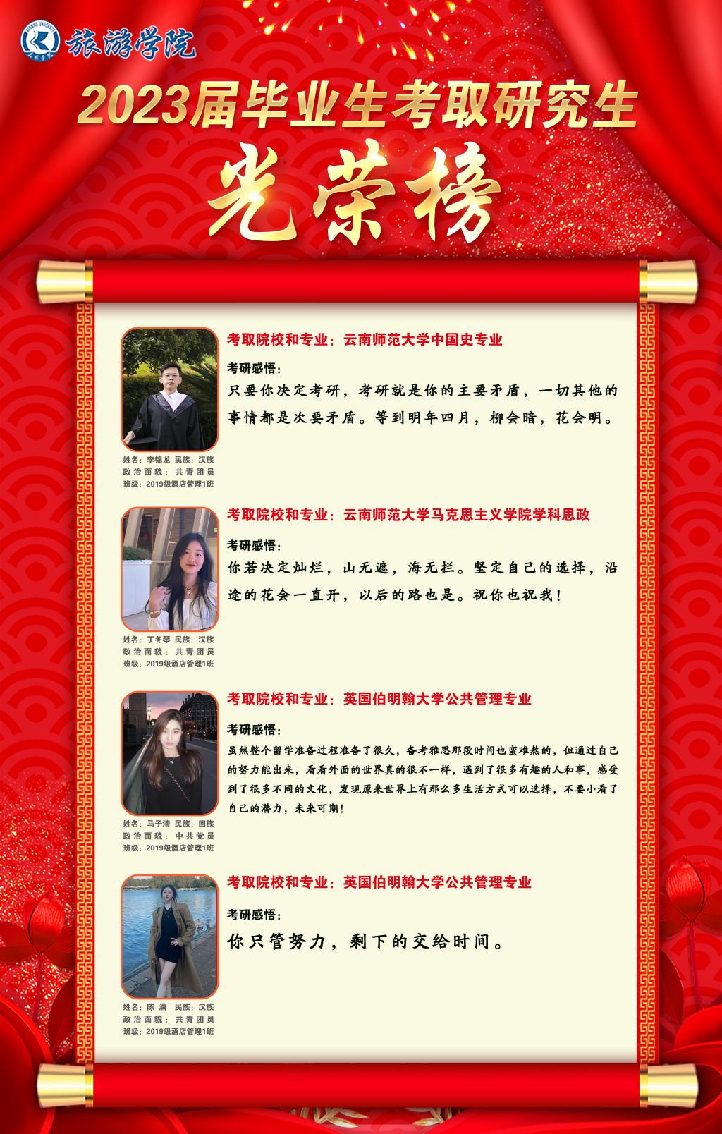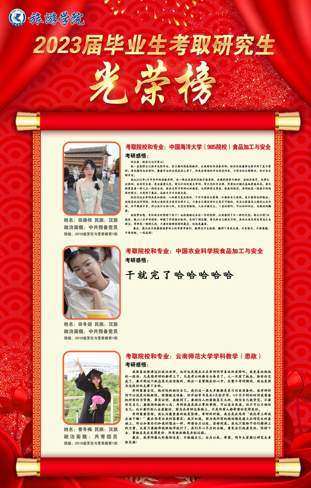 旅游学院2023届毕业生考研光荣榜