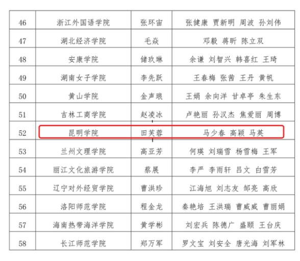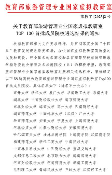 昆明学院入选教育部旅游管理专业国家虚拟教研室TOP100成员院校
