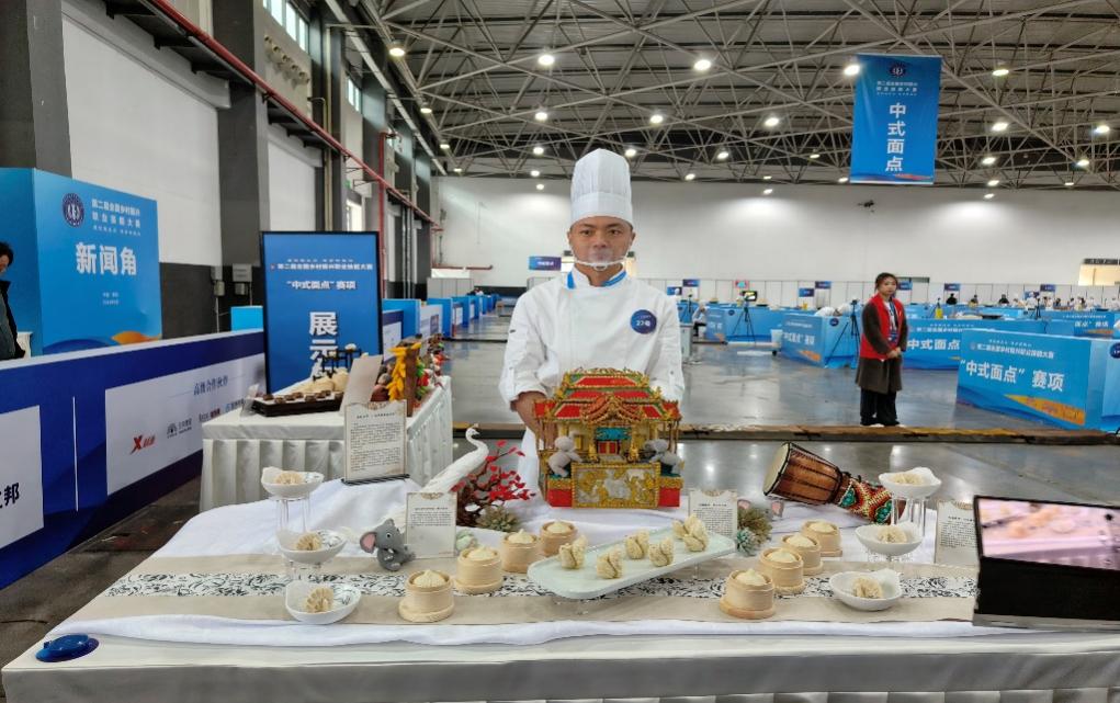 近期,昆明学院旅游学院烹饪与营养教育专业学生马肖,在副院长孙志强带领下,云岭首席技师王勇精心指导下,代表云南省参加在贵阳举办的第二届全国乡村振兴职业技能大赛决赛,与来自全国各地701名选手同台竞技,以其精湛的烹饪技艺征服了大赛评委,以总评分排名第二的好成绩,获得中式面点项目(学生组)银奖。