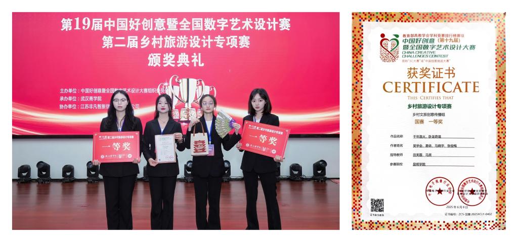 旅游学院学子在2025年第19届中国好创意乡村旅游设计专项大赛中荣获一等奖
