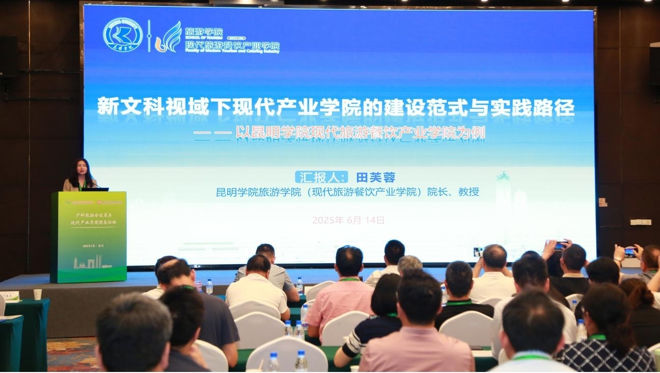 田芙蓉院长在会上作“新文科视域下现代产业学院的建设范式与实践路径”主题分享,深入分析了高校探索产教深度融合提供的政策与理论支撑,并结合昆明学院现代旅游餐饮产业学院实际,分享了在教学改革、产教融合、科技创新等方面的创新做法和成效。