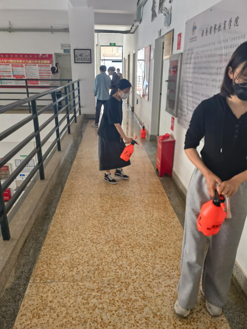 在3月份“学雷锋志愿服务”活动中,旅游学院学生第二党支部在学院党委的指导下,结合目前疫情防控工作需要,从3月18日起,在党政办公室荣杨老师的安排下,在支部书记李跃坤老师的带领下,党支部全体党员承担起旅游学院会议室、办公室的消杀工作,落实疫情防控“人人有责”、疫情防控“从我做起”的要求,践行全心全意为师生服务的理念。