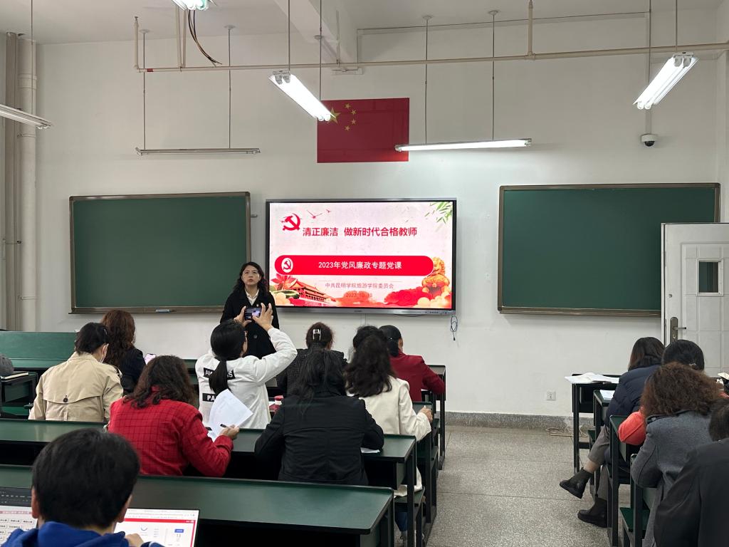 党委副书记、纪检委员喻玲讲授廉政专题党课。喻玲以党的六大纪律“党的廉洁纪律”为主题,阐释了党的廉洁纪律内容,廉洁纪律的重要性;带领全体教职工学习高校教师师德“红七条”“新时代高校教师职业行为十项准则”“新时代高校四有好老师标准”“党员廉洁自律规范”内容;围绕“清正廉洁,做一名高校合格教师”,向全体教职工提出三点要求:严以律已,坚守底线,自觉抵制师德失范行为;培养良好的内在素养,做青年学子的“四个引路人”;刻苦钻研业务,成为教育领域行家里手。最后希望全体党员和教师坚持立德树人根本任务,清廉从教,慎独自律,教书育人,争做“四有好老师”。