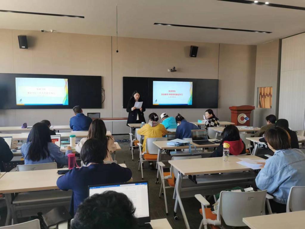 党委副书记喻玲传达12月13日学校2023年师德师风建设工作推进会精神,重点传达党委书记金幼和和校长丁文丽的重要讲话精神。