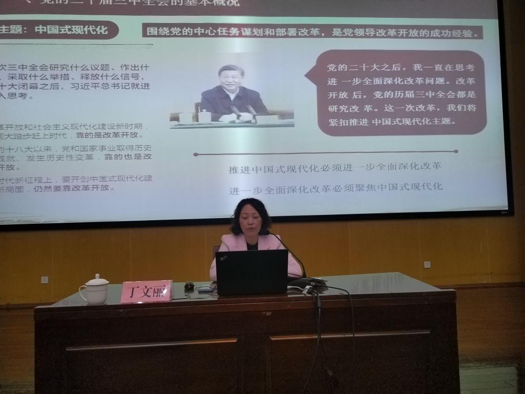丁文丽结合云南实际,向师生介绍了党的二十届三中全会的基本概况、进一步全面深化改革的背景意义和总体要求、进一步全面深化改革的重大举措。结合学校实际,提出深化育人模式、教育评价、学科专业、创新、管理体制五个方面的改革,推动学校高质量发展。要求三个学院的党组织和党员干部,要深刻领会全会精神的核心要义,自觉把改革摆在突出的位置,对标对表、深谋实干,以高度的自觉、饱满的热情、笃定的行动,全力推动全会精神落地见效。