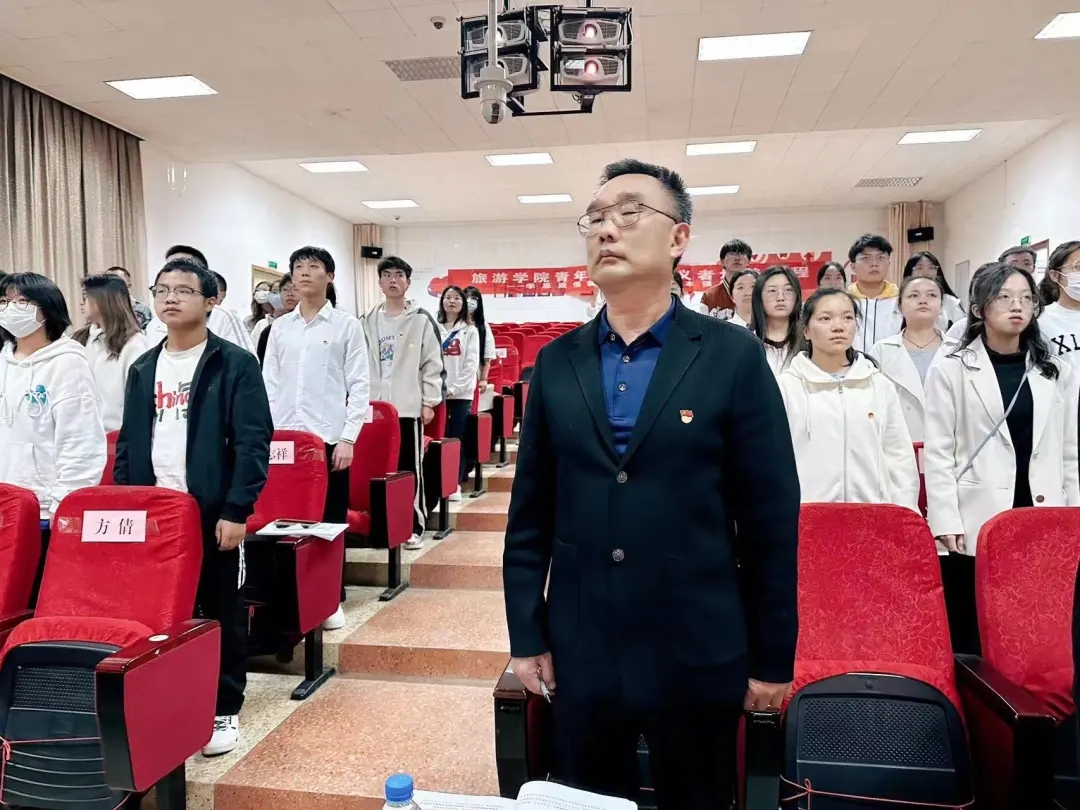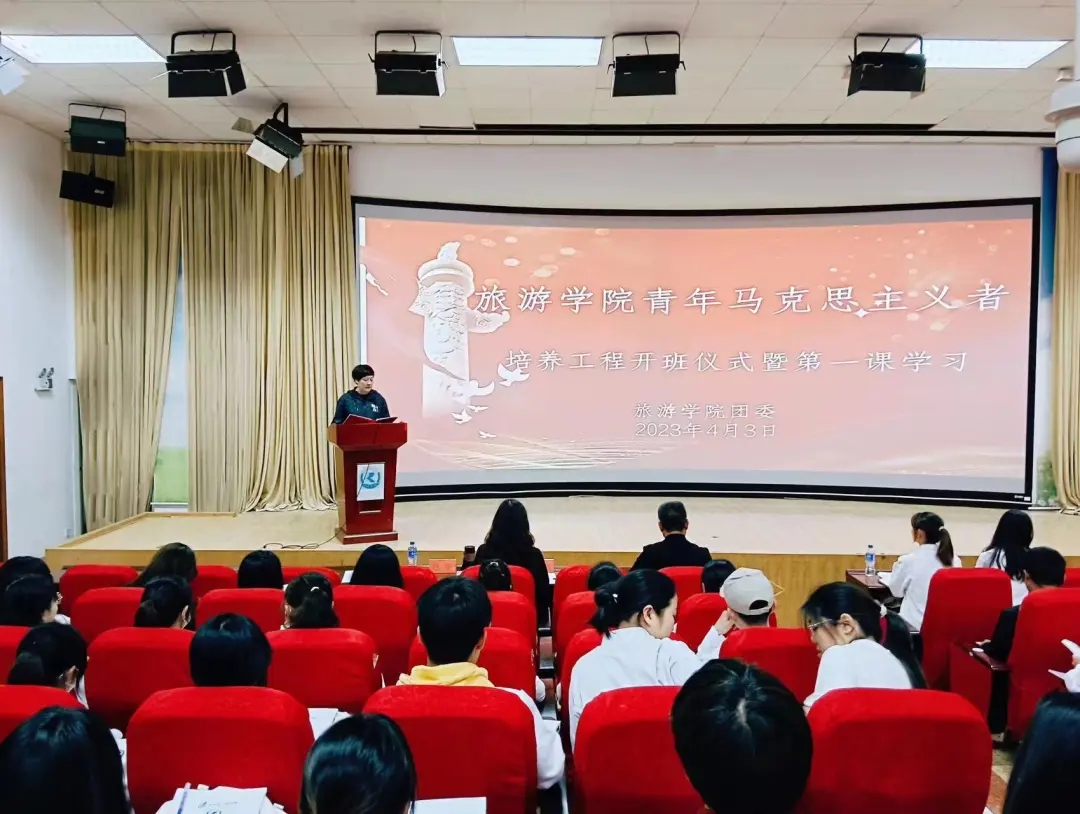 为深入学习贯彻党的二十大精神,深入实施“青年马克思主义者培养工程”,用党的先进理论武装指引青年学子,2023年4月3日晚7点,旅游学院在3D报告厅举办“青年马克思主义者培养工程”培训班开班式暨开班第一课。开班式由团委书记赵静主持,学院党委书记王建华、党委副书记刘艳萍出席开班式,第十三期全体“青年马克思主义者培养工程”培训班学员参加开班式。