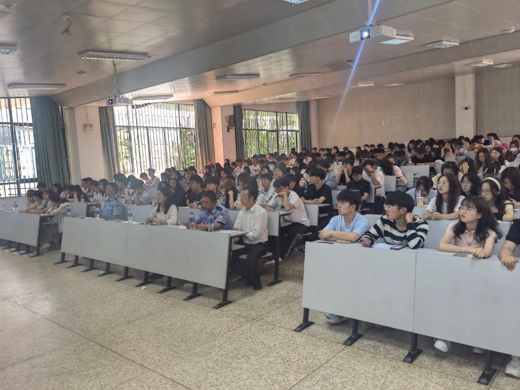 李学再警官向师生通报了本学期学校相关警情,罗一航警官用真实案例向大家生动讲述了新型电信诈骗方式、如何预防电信网络诈骗。