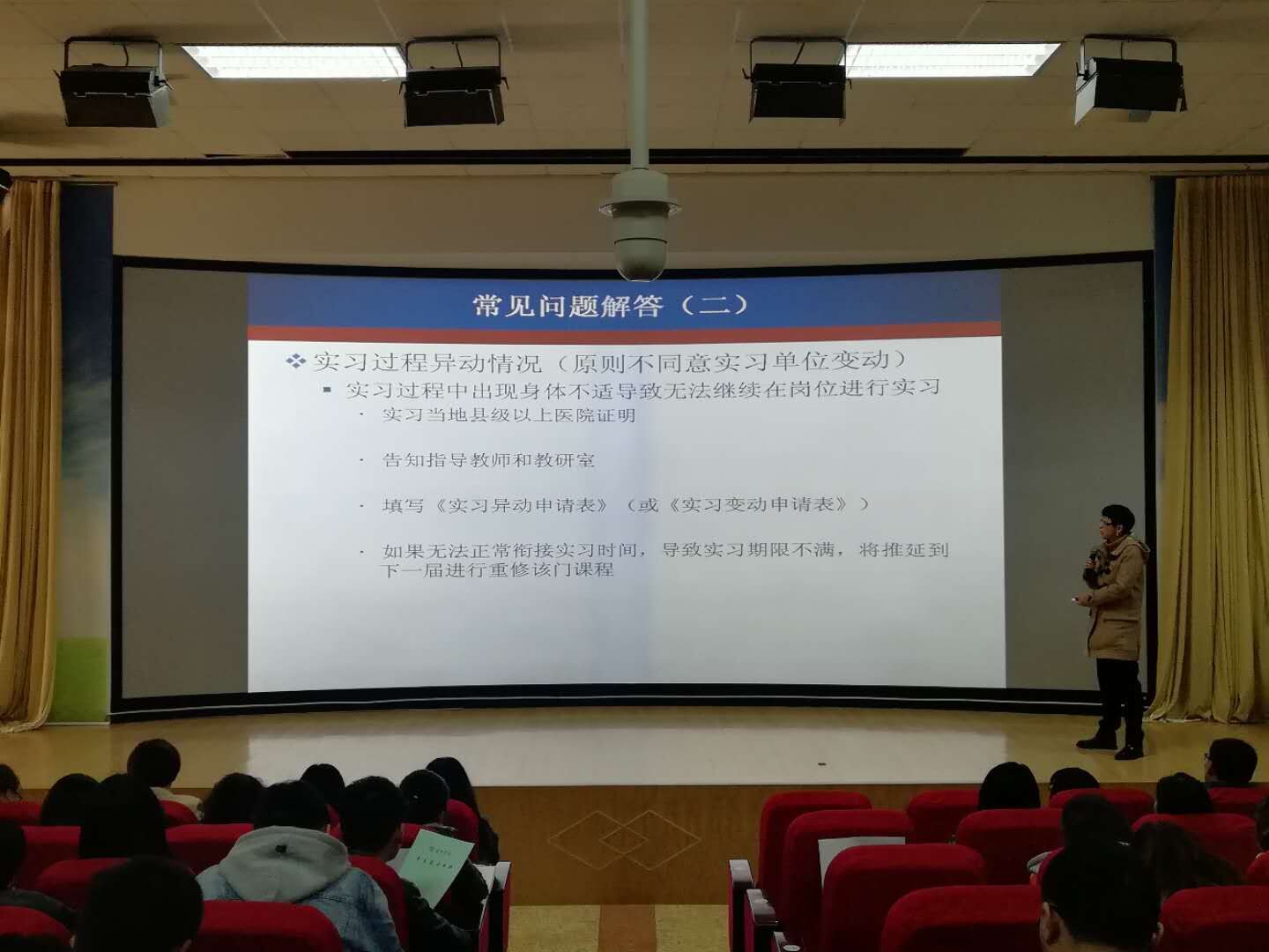 旅游学院副院长杨韫首先强调毕业实习是高等院校人才培养方案中非常重要的部分,是毕业生走向社会的关键一步。杨副院长在讲话中对学生提出了几点要求:正确认识当前的实习形势、切实转变观念并端正实习态度、严格遵守实习单位和学校的纪律、时刻注意安全、按时按质按量完成实习,实习过程中注意专业对口,严禁实习过程弄虚作假。最后,杨韫副院长为同学们详细说明了实习的具体任务、实习中可能存在的问题、实习期间的管理、实习材料的准备以及实习手册的填写要求。