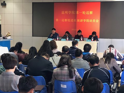 12月25日下午3:30,旅游学院组织全体教职工和学生代表,在惟行楼1105模拟导游实验室,参加昆明学院第一轮巡查第一巡察组进驻旅游学院全体教职工和学生代见面会。