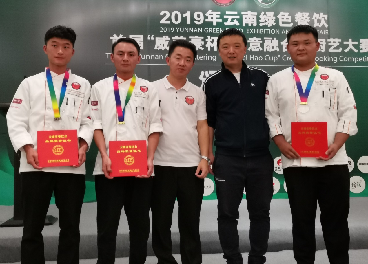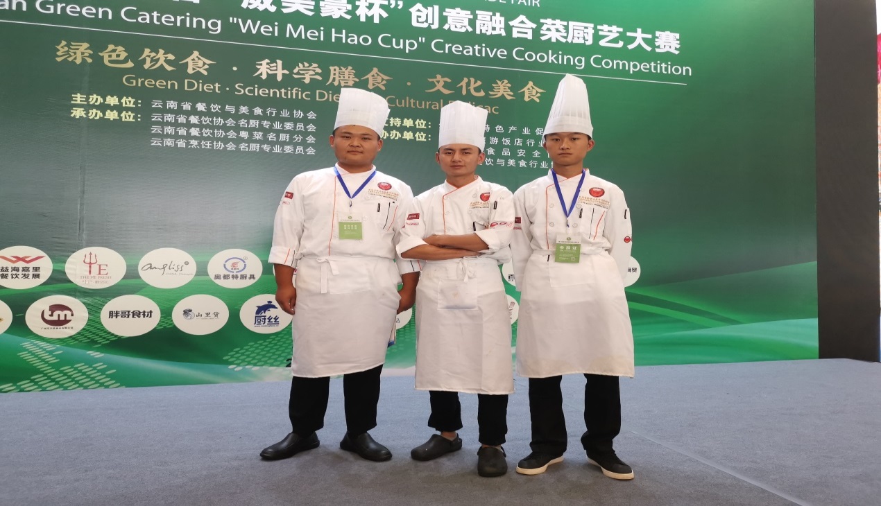 9月6日,在滇池会展中心举办的2019云南绿色餐饮“创意融合菜”厨艺大赛中,昆明学院旅游学院选派的汪家辉、陈达标和陈星沛三位同学在王勇、刘福灿两位老师的悉心指导下,从200多名参赛选手中脱颖而出,斩获两金、一铜的优异成绩。