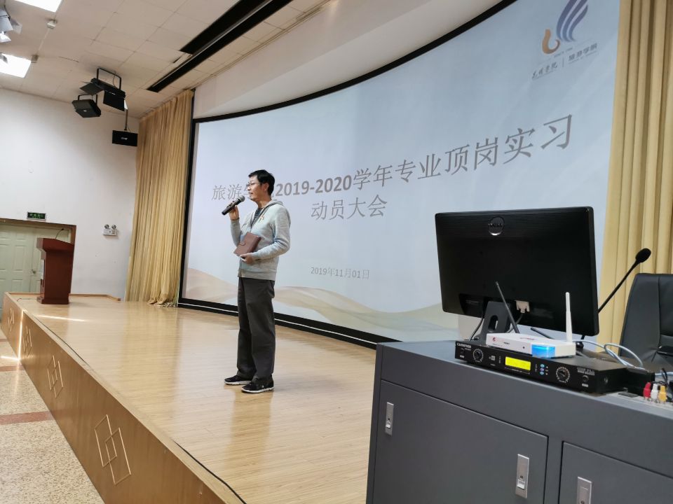为了让同学们更好更快地融入实习工作,并表达学院对前往专业顶岗实习的学生临行前的嘱托,旅游学院于2019年11月1日在旅游学院3D实验室举行了实习动员大会及安全教育大会。旅游学院党委领导班子成员以及旅游、酒店、会展和烹饪教研室的实习指导教师,第一批带队出行教师和前往进行实习的全体同学参加了此次全院大会。