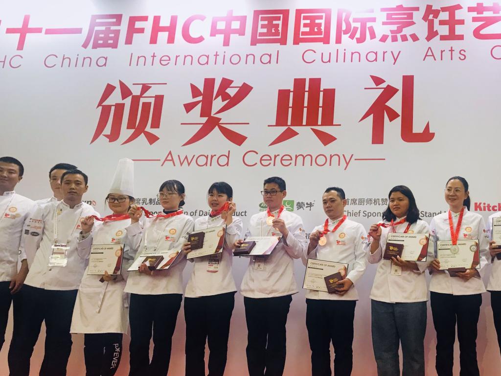 FHC中国国际烹饪艺术大赛是世界厨师联合会(WACS)在中国唯一认证的洲际性国际烹饪赛事。为了参加本次大赛,赛前我院春城首席技师王勇大师对学生汪家辉进行悉心的指导,参赛师生积极备赛,最终我院参赛师生从30多个国家的600余名参赛选手中脱颖而出,康烨老师获得翻糖专业组别银牌,汪家辉同学获得西式童子鸡青年组别铜牌,开创了学院烹饪专业自办学以来师生参加国际性烹饪赛事获得奖牌的新局面,促进烹饪专业与亚洲、国际接轨。