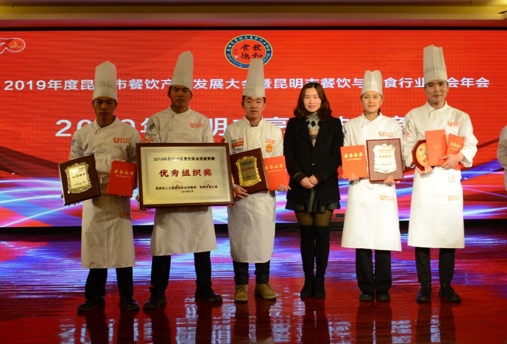 2019年昆明地区滇菜烹饪职业技能竞赛于12月3日在昆明国际会展中心3楼钻石厅举行颁奖仪式,旅游学院代表队表现优异,喜获佳绩。