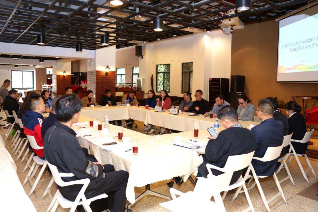 12月18日下午,旅游学院2020年企业座谈会暨2021届毕业生推介会在酒水实验室成功举办。本次会议由旅游学院党委书记王建华主持,昆明学院招就处处长陈开祥、旅游学院院长田芙蓉、旅游学院副院长孙志强、旅游学院团总支书记荣杨、旅游学院就业工作负责教师李颖、15家校企合作企业代表及旅游学院2021届优秀毕业生代表参加了会议。