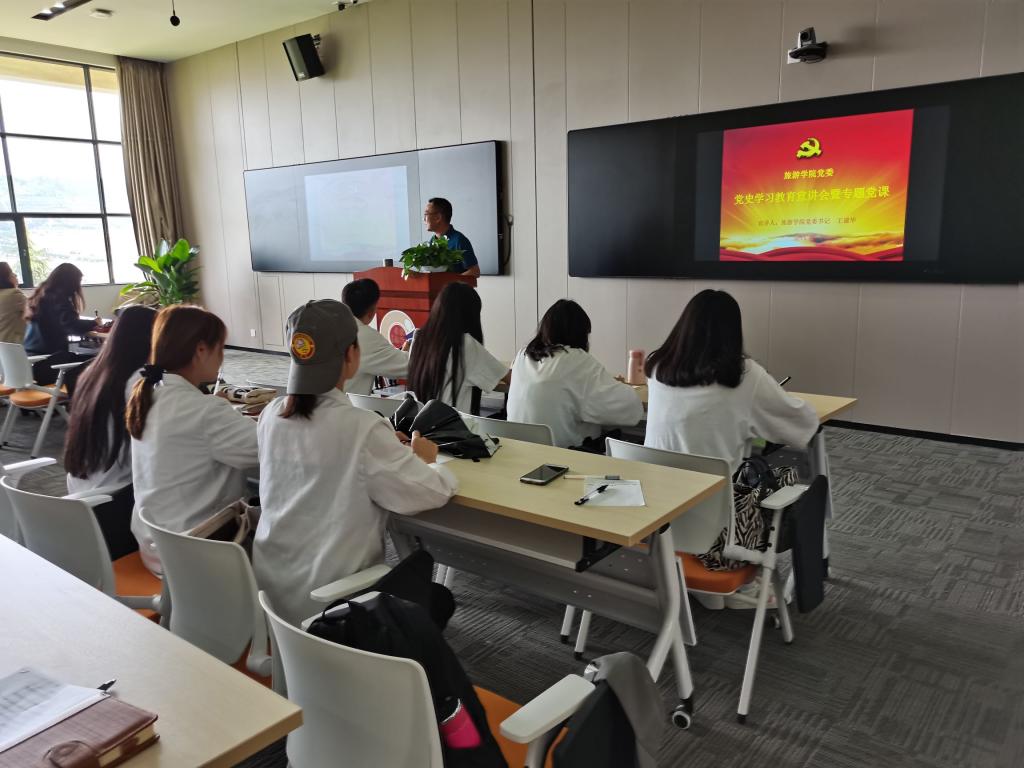 为贯彻执行《昆明学院党史专题宣讲工作实施方案》,2021年4月30日,旅游学院党委结合主题党日活动、周五教职工政治理论学习,在惟行楼6301举办党史专题宣讲报告会,学校宣讲团成员、学院党委书记王建华同志作党史专题宣讲报告,学院全体党员参加报告会。