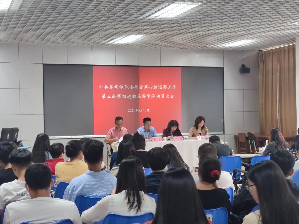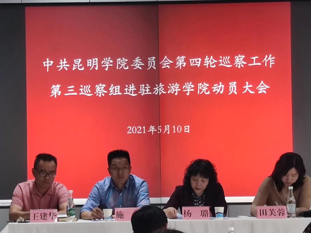 根据学校党委统一部署,校党委第三巡察组近日进驻旅游学院开展巡察工作。5月10日,旅游学院召开校党委第三巡察组巡察旅游学院党委工作动员会,校党委第三巡察组组长杨璐同志就即将开展的巡察工作作了动员讲话,校党委巡察工作领导小组成员、组织部部长施磊同志就配合做好巡察工作提出要求,旅游学院党委书记王建华同志主持会议并作表态发言。