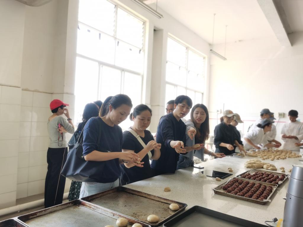 活动开始前,首先旅游学院党委书记王建华向全体教职工表达了节日祝福,带领全体教职工认真学习了习近平总书记“七一”重要讲话精神,结合身边事教育身边人的主题,教育引导广大教师崇德修身、潜心 教书育人。在学习结束后,全体教职工前往烹饪实训大楼,由烹饪专业特聘教师徐伟大师讲授滇八件之一的云腿月饼制作材料、过程,并亲自示范,带领全体教职工制作云腿月饼。在一片欢声笑语中,本次教师节庆祝活动划上了圆满的句号。