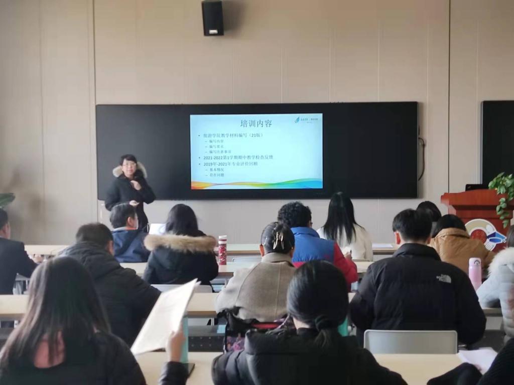 2021年12月24日,旅游学院在惟行楼6301开展了2021版旅游学院教学资料编写指导培训。本次培训由杨韫副院长和孙志强副院长主持,全体教师参与培训。
