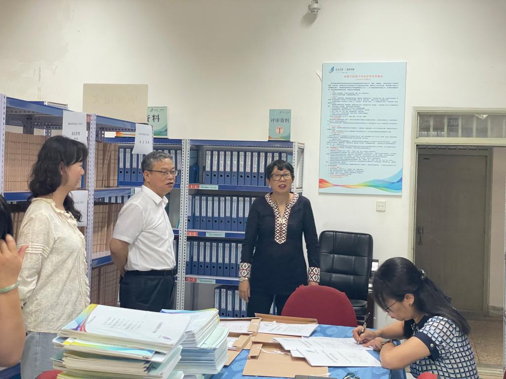 7月24日下午,学校党委副书记王文成带队,到旅游学院开展本科教育教学审核评估专项检查。检查采取听取汇报、查阅材料、实地察看等形式,围绕自评自建开展情况、第二轮专项检查发现问题整改情况进行。纪检监察处和教学质量监控与评估中心负责人、教务处工作人员、人文学院和体育学院分管教学副院长随同检查。学院领导班子、教研室(实验室)主任、教学办等相关人员参加会议。