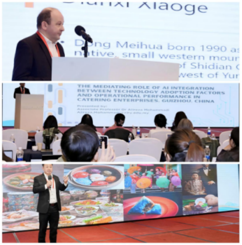 马来西亚泰莱大学Ong Chuan Huat博士向师生介绍了马来西亚的娘惹菜(Baba Nyonya Cuisine),它起源于15—19世纪中国移民与马来人通婚后形成的融合菜,分布上集中于马六甲、槟城等地,其菜系融合中马及多元文化特色,是马来西亚重要文化遗产,兼具文化与旅游价值。当前发展呈现现代新趋势,带动本地餐饮经济与就业,面临专业厨师短缺、食材成本上涨、快餐竞争等挑战。最后提出创新机遇,包括社交媒体传播、主题餐饮、健康化改良等,建议通过厨艺培训、旅游局合作、文旅融合等策略促进其传承。
