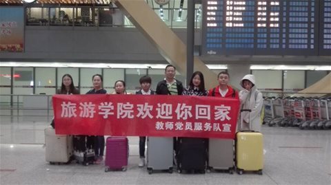 由于大部分返校学生的航班凌晨到达,时段分散,且机场到学校无直达公交车辆,学生返校极其不便,存在许多安全隐患。为了保证同学们安全回到学校,旅游学院党政班子高度重视,召开会议,专题研究,专门安排学院教师党员义务服务队跟随学校车辆前往昆明长水国际机场,迎接学生回校。把关怀和爱护送到每位同学心中。当学生见到前来迎接的老师时,都激动的说:“旅游学院,真温暖!”