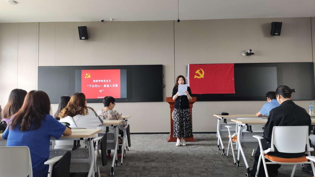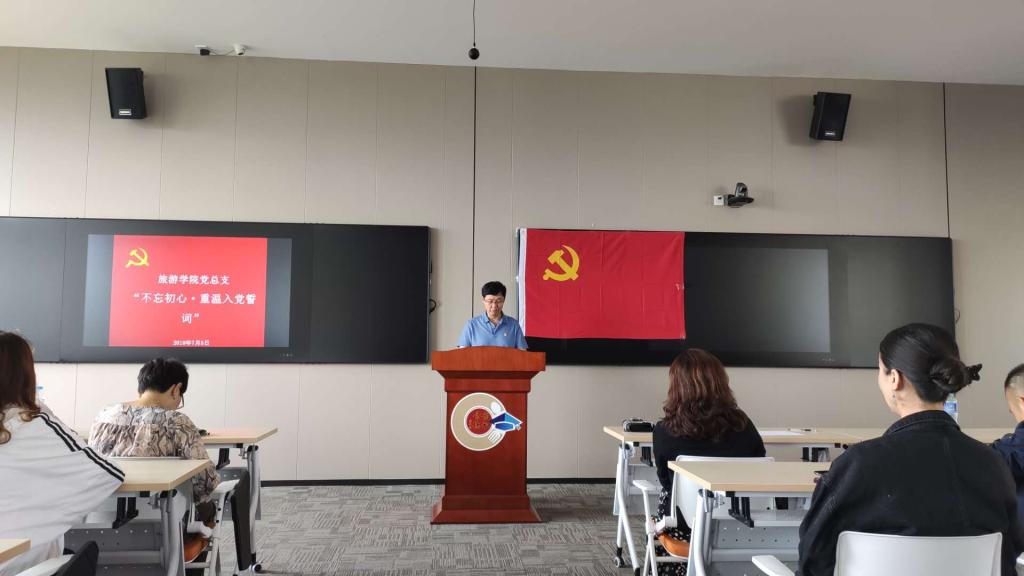 2019年7月5日下午,旅游学院党总支在惟行楼6301报告厅举行庄严的“不忘初心、重温入党誓词”活动。活动由旅游学院院长、党总支副书记田芙蓉同志主持。党总支书记熊绍宏同志做主题发言。全体师生党员80多人参加。