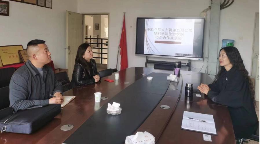 3月8日,旅游学院党委副书记刘艳萍携就业辅导员杨博文与中凯立欣人力资源有限公司开展毕业生就业工作座谈,针对毕业生职业生涯规划教育、优质企业招聘资源分享等事宜进行沟通。
