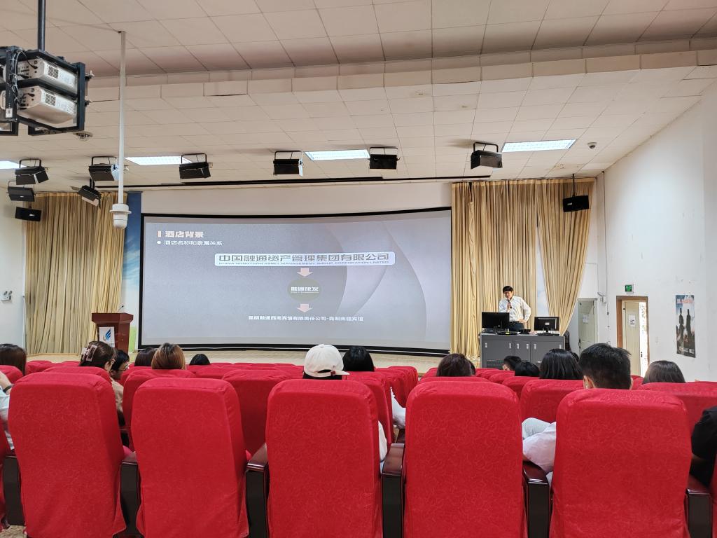 昆明融通西南宾馆人力资源总监姚毅为同学们介绍了企业基本情况、运营模式、人才需求以及发展前景,并表示随着市场竞争日益激烈,企业对人才需求也会越来越多,欢迎同学们加入企业,也希望同学们能够注重提高自己的实践能力和创新精神,脚踏实地,从小事做起,逐步追寻自己的目标和理想。